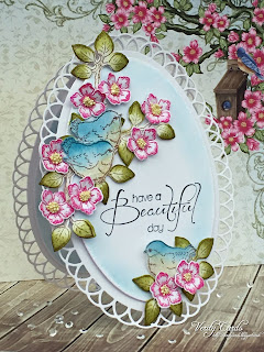 1. Hi Anne, the die set has a plain oval die in it too and what I did was cut that on a folded piece of card to create a card. I then die cut the fancy oval and adhered one with 3D foam to the back of the plain oval card and then one to the front. The 3D foam gave enough depth for the card to open. Then I stamped my sentiment and cut it out with the plain oval die, inked it and then adhered to the front of the card to decorate. Hope that helps, hugs x